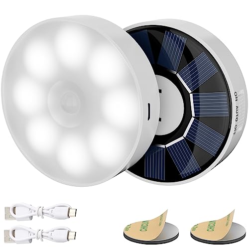 Rörelsesensorlampa Inomhus [Solar & USB Uppladdningsbar], Electight 2 Pack 8 LED Nattlampa, 3 Ljuslägen & 400 mAh Batteri, Sladdlös Magnetisk Nattlampa för Trappor, Garderob, Hall