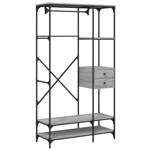 vidaXL Garderob med lådor grå sonoma 100x40x180 cm konstruerat trä, hatthyllor, klädstång, klädförvaring, klädskåp, klädstänger, jackhängare, garderob