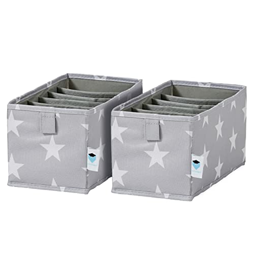 LOVE IT STORE IT Lådorganisatör 2 delar – organisationssystem för garderoben – set med 6 fack vardera – grå med stjärnor – 15 x 30 x 15 cm