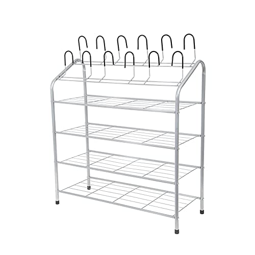 Compactor Skohylla med 4 Nivåer, Skoorganiseringsstativ för Hallen, Verandan, Sovrummet, Garderoben eller Tvättstugan, Skoförvaringsenhet för 18 Par Skor, Enkel Montering, Metallram, Grå