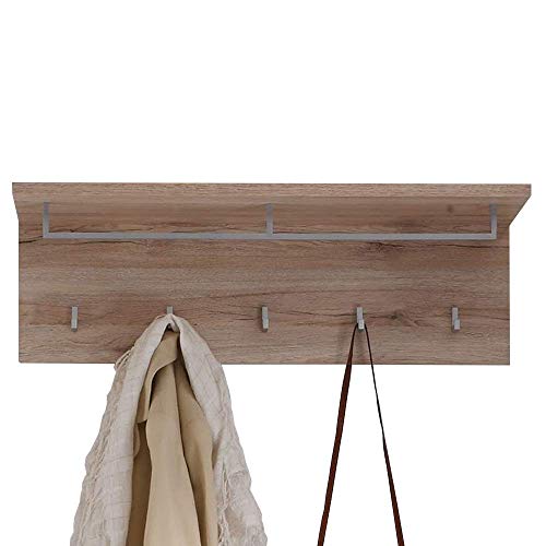 trendteam smart living – Malea – garderobspanel – Ek San Remo – väggbräda för garderoben – 5 klädkrokar, 1 klädstång – (B x H x D) 88 x 29 x 27 cm – med hatthylla