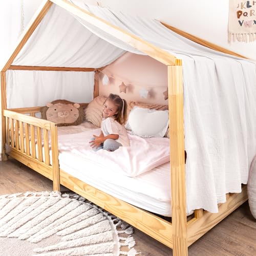 Lilimaus Sänghimmel av 100 % bomullsmuslin för hussängar, handgjord dekorativ gardin för barn, flickor, pojkar, vit