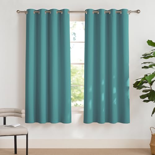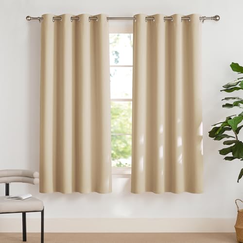 PONY DANCE Öljett termisk beige gardin med ringar – energibesparande integritetsskyddsgardiner för rum mörkare 132 x 153 cm korta öljettgardiner för barn barnkammare, Biscotti beige, 1 par