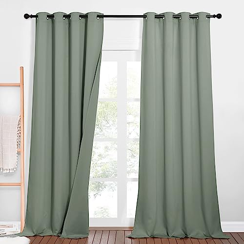 PONY DANCE Ljuddämpande gardin – ogenomskinliga gardiner med filtdekoration sovrum värmeisolerad akustisk för barn, pojke, vuxen, 132 x 240 cm, 2 st, salvia grön