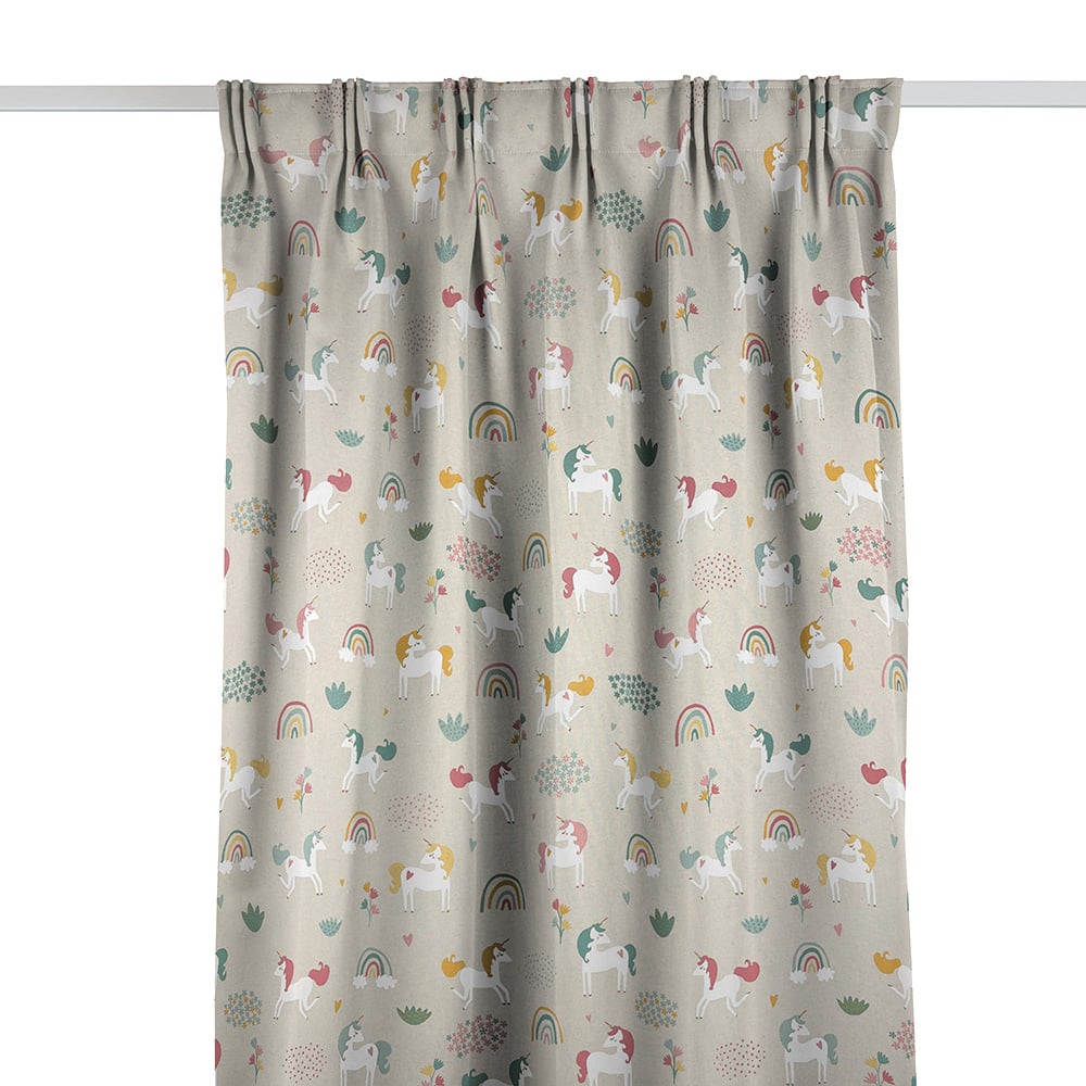 Pony Dance gardin för barn-/flickrum, 1 styck, ogenomskinlig, vardagsrum, modernt öljettskynke, extra bred gardin, sovrum, H 210 x B 200 cm, ljusbeige