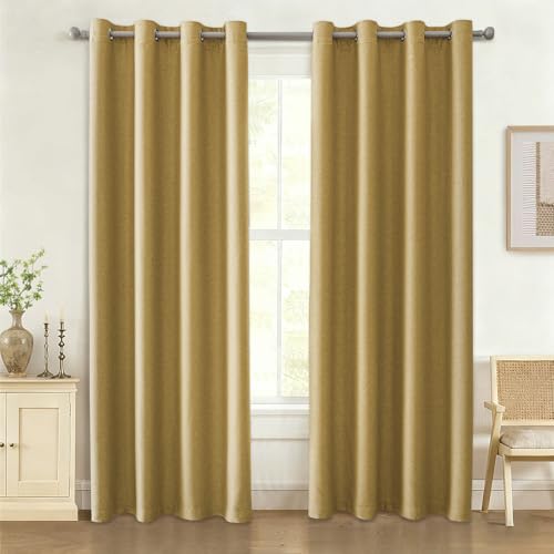 Ystyle Termisk Mörkläggningsgardin, Uppsättning Om 2, Linneffektgardiner, Värmeisolerande Gardin Mot Kyla Och Värme, Vardagsrumsgardin, Ljuddämpande Gardin, 140x240 cm, Gul