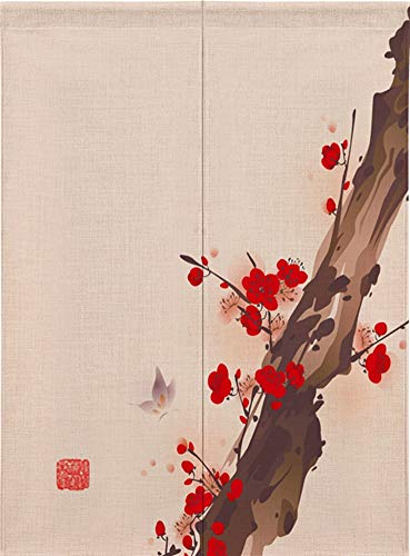 Ommda Noren kinesisk gardin japansk blomma gobeläng noren lotus gardin gobeläng med stång, plommonblomma b, 90x150 cm