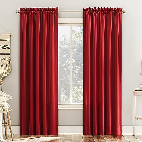 Sun Zero Barrow 2-pack energisparande stång ficka gardin panel par, 137 cm x 241 cm, röd