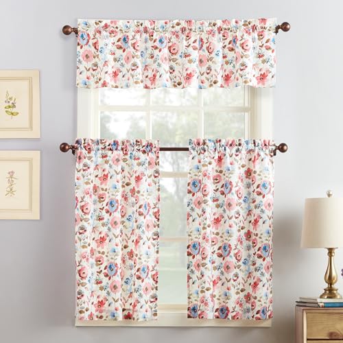 Nej. 918 Dora Blommig Halvskir Stång Ficka Kök Gardin, 137 cm x 91 cm, Korall