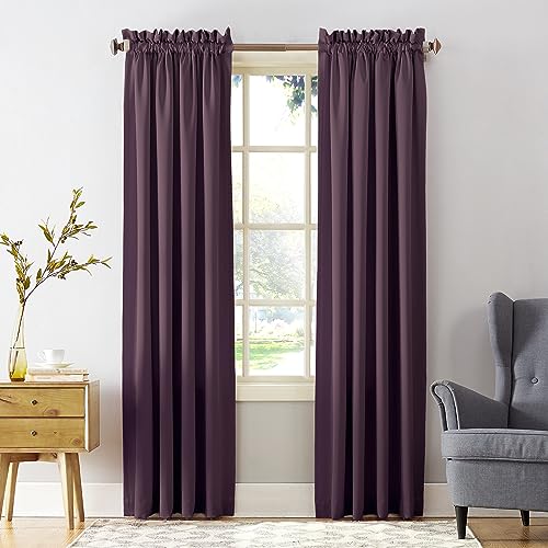 Sun Zero Barrow 2-pack energisparande stång ficka gardin panel par, 137 cm x 160 cm, plommon
