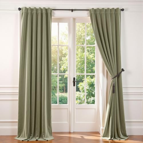 Lazzzy grön sammet mörkläggningsgardin värmeisolerad gardin för sovrum vardagsrum mörkläggning integritet draperier brusreducerande sammet gardin stång ficka 244 cm lång gardin 1 panel salvia grön