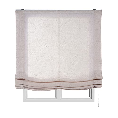 STORESDECO - Vikgardin med stång, transparent enfärgad gardin för fönster och dörrar, perfekt till kök, vardagsrum etc. I Beige, 180 x 175cm