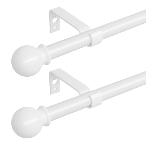 bar vita gardiner 3 meter 2-pack, justerbara gardinstänger med fästen, 16 mm diameter gardin dekorativ stång för vardagsrum och sovrum, 80–300 cm