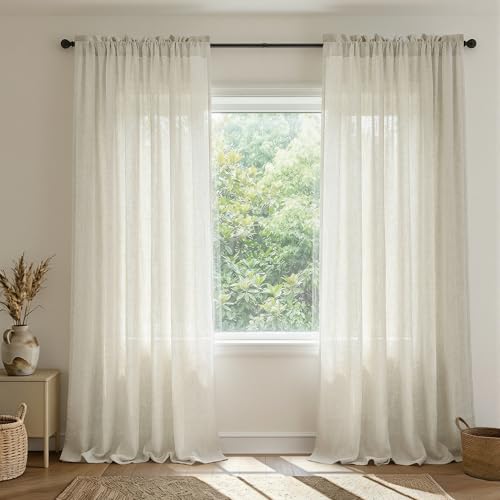 Naturliga färgade gardiner 250 cm långa för vardagsrum 2 paneler par set stång ficka draperier ljusfiltrering bondgård linne blandning gardin för uteplats skjutglasdörr vertikal persienn fönster accent 9 fot