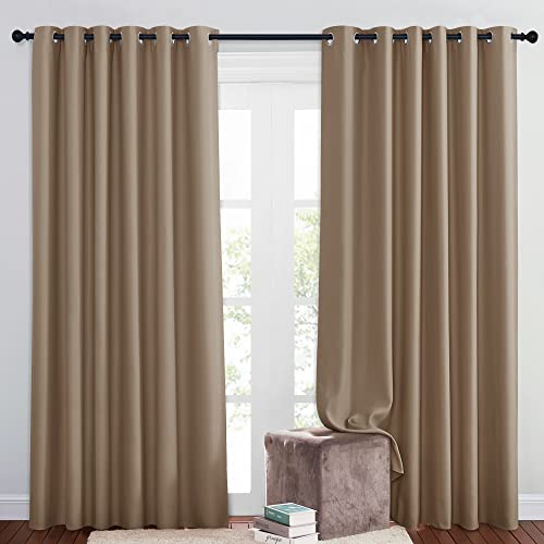 Pony Dance Set med 2 mörkläggningsgardiner, ogenomskinliga gardiner, termisk gardin med öljetter, modern, för vardagsrum, 210 × 132 cm (H × B), ljusbeige, set om 2