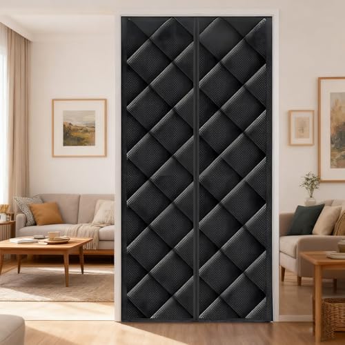 Isolerade Gardiner För Vintern, Magnetiska Termiska Gardiner Isolerade, Holländsk Dörr Tillfällig Dörr Ljudisolerad Självstängande Skärmdörrskydd, 80 85 90 100 190 200 210 220cm(Black,115x215cm)