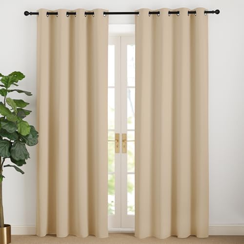 NICETOWN Gardiner ogenomskinliga beige gardiner 220 cm lång värmeskyddsgardin, ljussäkra gardiner med öljetter, vardagsrum, moderna gardiner, set om 2, Biscotti beige H 220 x B 140 cm