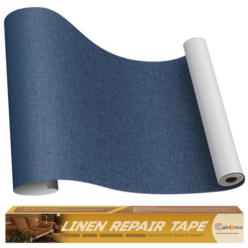 Cahomo Självhäftande linnetyg lappar, 40 x 230 cm, självhäftande reparationstyg, reparationslappar av linne, för soffor, bilsäten, gardiner, möbler - marinblå