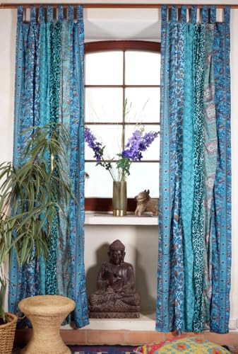 GURU SHOP Boho Patchwork Gardiner, 1 par bohemiska gardiner av sarityg, unikat – turkos, syntetiska, 230 x 100 cm, dekorativa gardiner