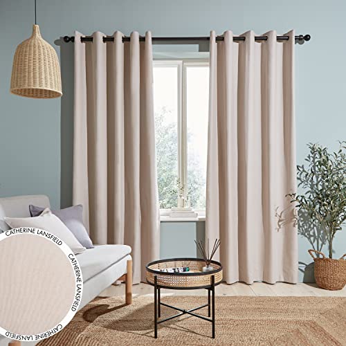 Catherine Lansfield Melville vävd textur bomull 167 x 230 cm öljett ofodrade gardiner två paneler naturliga