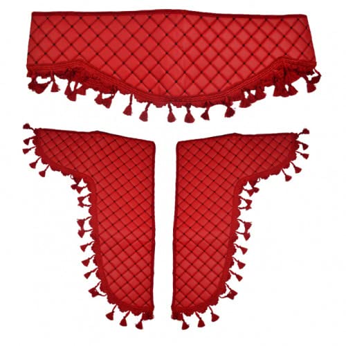 Gardiner uppsättning av 3 st röda med röda tofsar 230 cm för alla lastbilar ekoläder
