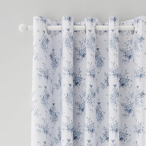 Catherine Lansfield Lucie blommig volang helt vändbar 168 x 230 cm öljett gardiner två paneler blå