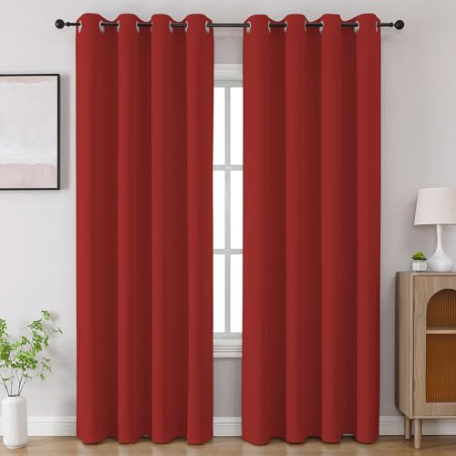 CUCRAF Mörkläggningsgardiner 241 cm längd, värmeisolerade mörkläggningsgardiner för sovrum, ljusblockerande gardiner för kök vardagsrum, set med 2 paneler, 132 x 230 cm, rödbrun röd
