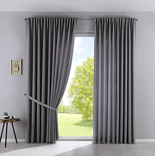 Uppsättning av 2 gardiner ogenomskinliga "Palermo" H x B 250 x 300 cm, grå gardiner, extra bred, matt, ljusgenomsläppliga dolda öglor, gardinband, 100002651-2