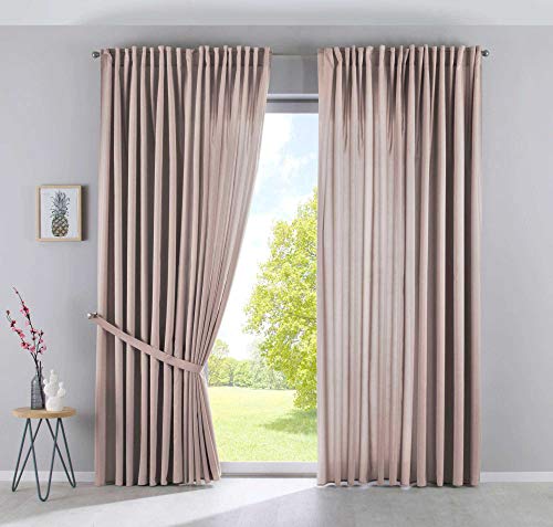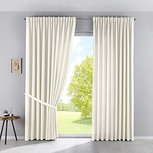Cleanlevel EST 2016 gardiner gardin 300 cm B x 245 cm H gardin mörkläggningsgardin veckband ogenomskinlig mörkläggning termisk värmeisolerande vardagsrum (grädde veckband)