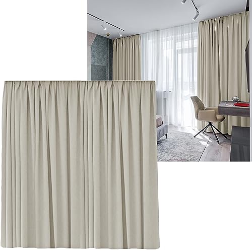 Softalker Gardiner med veckband, mörkläggningsgardiner, ogenomskinliga gardiner, beige, extra breda gardiner, 300 cm, rumsavdelare gardin, 240 cm höjd för skena, vardagsrum, sovrum, barnrum, 1 st