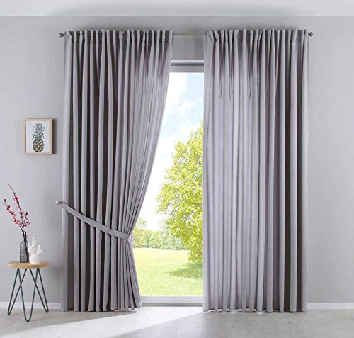 Joydeco Vita gardiner 300 cm lång 2 panel-set, värmeisolerade långa gardiner och draperier 2 burg, julgardiner för vardagsrum sovrum fönster (B 132 x L 320 cm, gråvit)