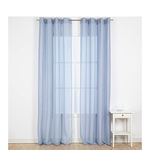TRAMAS+ Interiörgardiner, skira gardiner för vardagsrum och sovrum 140 x 300 cm, med öljetter sovrum, barn, ungdomar och vuxna och matsal - indigo