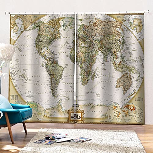 NBVGHJ fönstergardin världskarta gardiner för vardagsrum och sovrum fönstergardiner höga mörkläggningsgardiner dekoration (B) 300 × (H) 250 cm