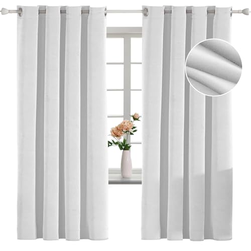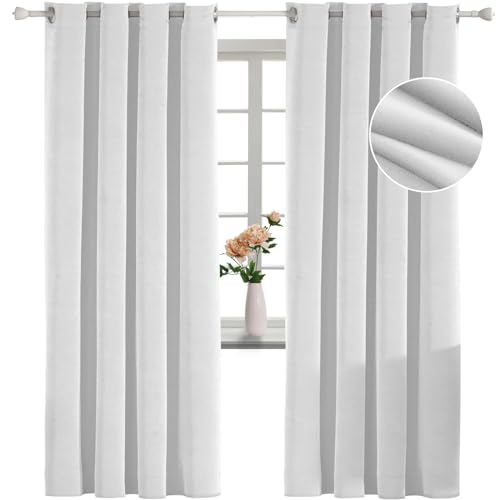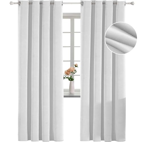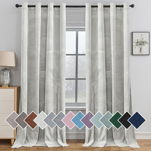 YSTELLAA Sammet 100% Mörkläggningsgardin 2 Delar, 140×145CM, Ogenomskinliga Gardiner Med Öljetter, Sovrums Värmeisolerande Gardiner, Värmeisolerande Kall Och Varm Gardin, Beige Blanc