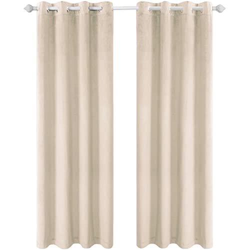 JIUZHEN Mörkläggningsgardin av sammet, set om 2 mjuka ogenomskinliga gardiner med öljetter för sovrum, 140 x 215 cm (bredd x höjd beige