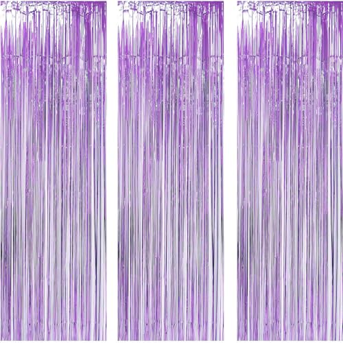 AILEXI 3 stycken gardiner, metalliska, glittrande, blad, fransar, gardin för dörr, fönster, dekoration, för födelsedag, bröllopstillbehör, 92 x 245 cm – lila