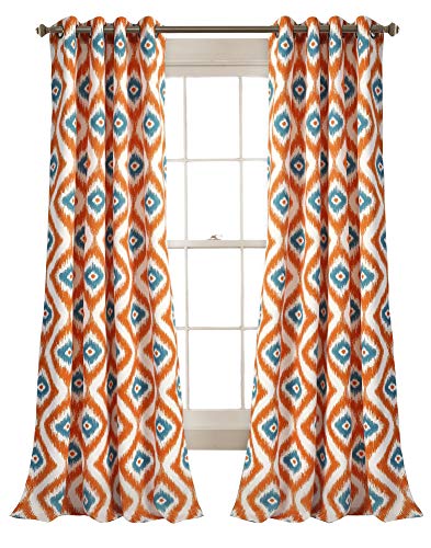 Frodig dekor diamant Ikat gardiner – geometriskt mönster tryck mörkläggningsgardiner fönsterpanel set för vardagsrum, matsal, sovrum (par), 213 cm x 132 cm, turkos orange