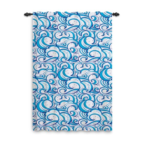 ggaimwf 107x160 cm japansk vågig pennvecksgardin blå abstrakta mönster tryckta gardiner stångpass 80 % mörkläggningsgardiner bakre flik fönsterkläder för vardagsrum sovrum 1 panel