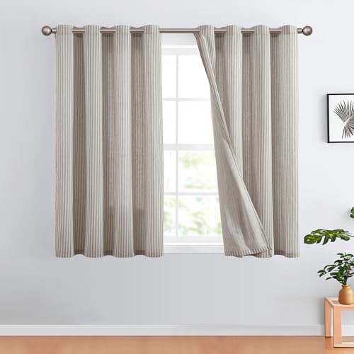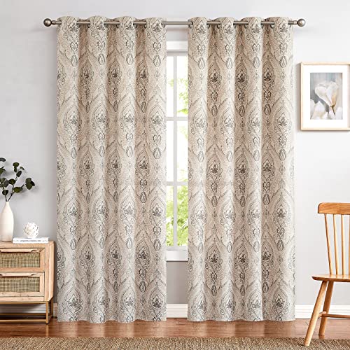 Deconovo Mörkläggningsgardiner med öljetter, sovrumsgardin, ogenomskinliga gardiner med mönster, 229x132 cm (höjd x bredd), beige, uppsättning med 2