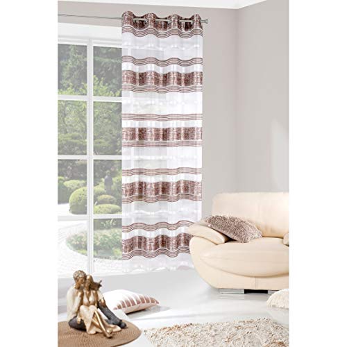 EMEMA Randiga skira gardiner med öljetter voile gardiner modernt vardagsrum set med 2 gardiner sovrum transparent mönster halvgenomskinlig randig gardin 140 x 245 cm vit beige