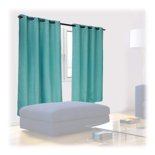 Eurofirany geometriskt mönster sammetslook sammetslen gardiner 8 öljetter ädel gardin elegant slät enfärgad mjuk vardagsrum sovrum lounge, turkos + silver, 135 x 250 cm