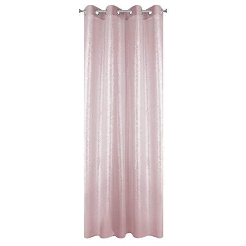 Eurofirany slät metalliska prickar transparent tryck mönster matt 8 öljetter mjuka gardiner moderna enkla sovrum vardagsrum, rosa + silver, 140 x 250 cm