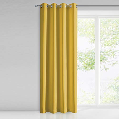 Eurofirany Blackout ljusdämpande mörkt mönster gardiner 8 öljetter ädel gardin elegant slät enfärgad mjuk vardagsrum sovrum lounge, senapsgul, 135 x 250 cm