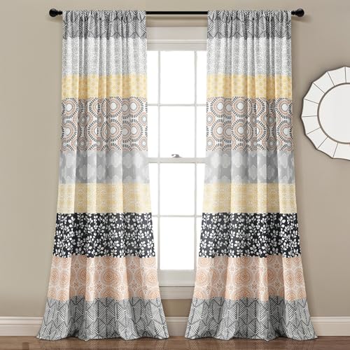 Lush Decor Bohemiska randiga gardinlängder, par, 132 x 213 cm, gul och grå, färgstarka långa gardiner i maximalistisk bohemisk stil för sovrum, vardagsrum och matsal