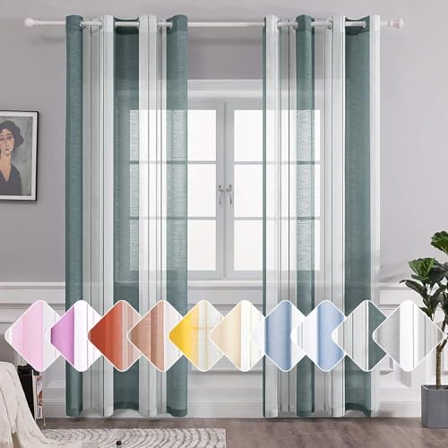 BYSURE randiga gardiner, voile, moderna, set om 2, 140 x 145 cm, mörkgrön
