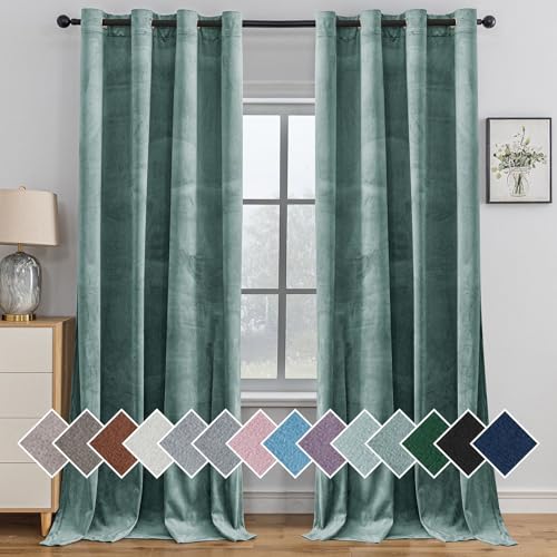 JIUZHEN Mörkläggningsgardin av sammet, set om 2 mjuka ogenomskinliga gardiner med öljetter för sovrum, 140 x 145 cm (bredd x höjd), grön