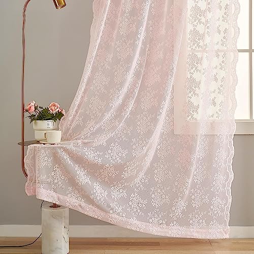 YJ YANJUN Ljusrosa genomskinliga voile gardiner – 90 dropppar, viktoriansk spets, vardagsrum, matsal, uteplats dörrnät, 132 cm B x 229 cm fall
