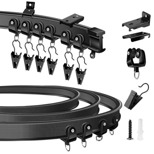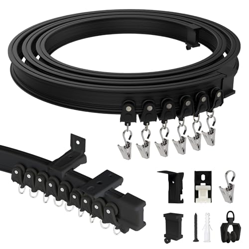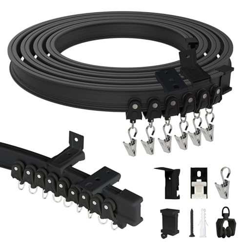 KOLAKO Takgardinspår, 3,5 m flexibel böjbar gardinspår tak väggmontering svart böjd slitstark RV glidgardin skena system rumsavdelare, takspår för gardiner