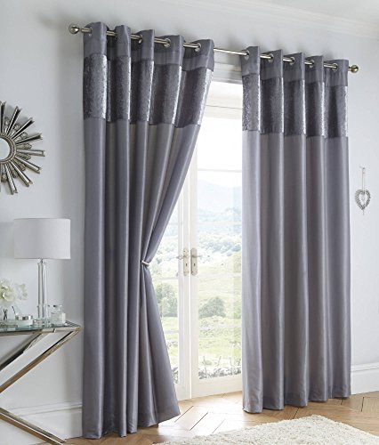 Boulevard Sammetsremsa fusksilke öljett ring topp gardiner helt fodrade, tyg, silvergrå, 152 x 183 cm