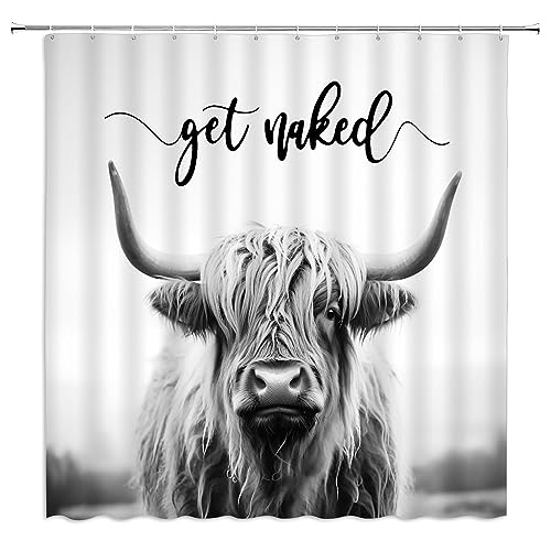 ZWSMZW Highland ko duschdraperi grå rustik nötkreatur tjur västerländsk vilda djur bli naken land bondgård rolig stuga badrumsdekor tyg gardiner med krokar